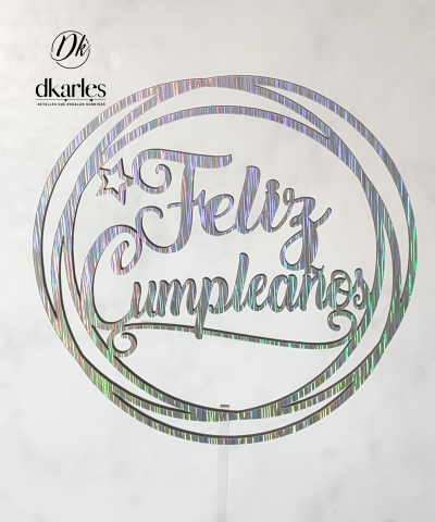 DKarles - Topper Feliz Cumpleaños, plateado circular