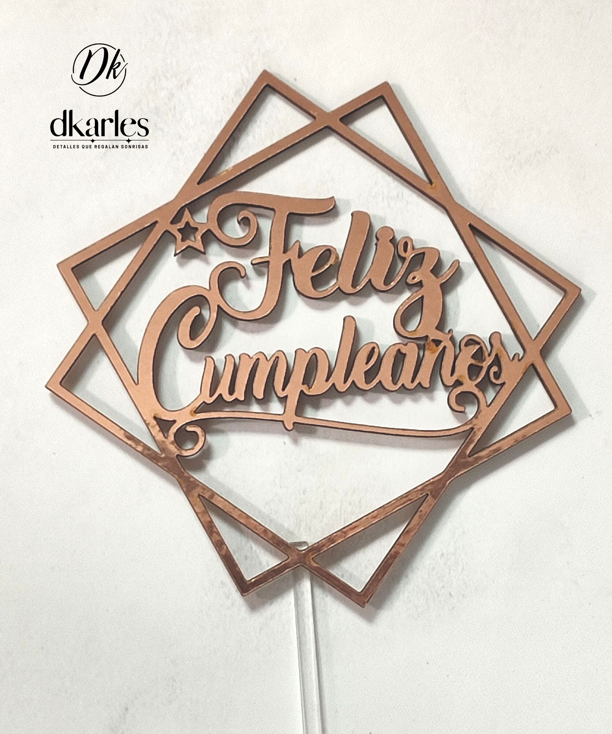 DKarles - Topper Feliz Cumpleaños, Palo Rosa