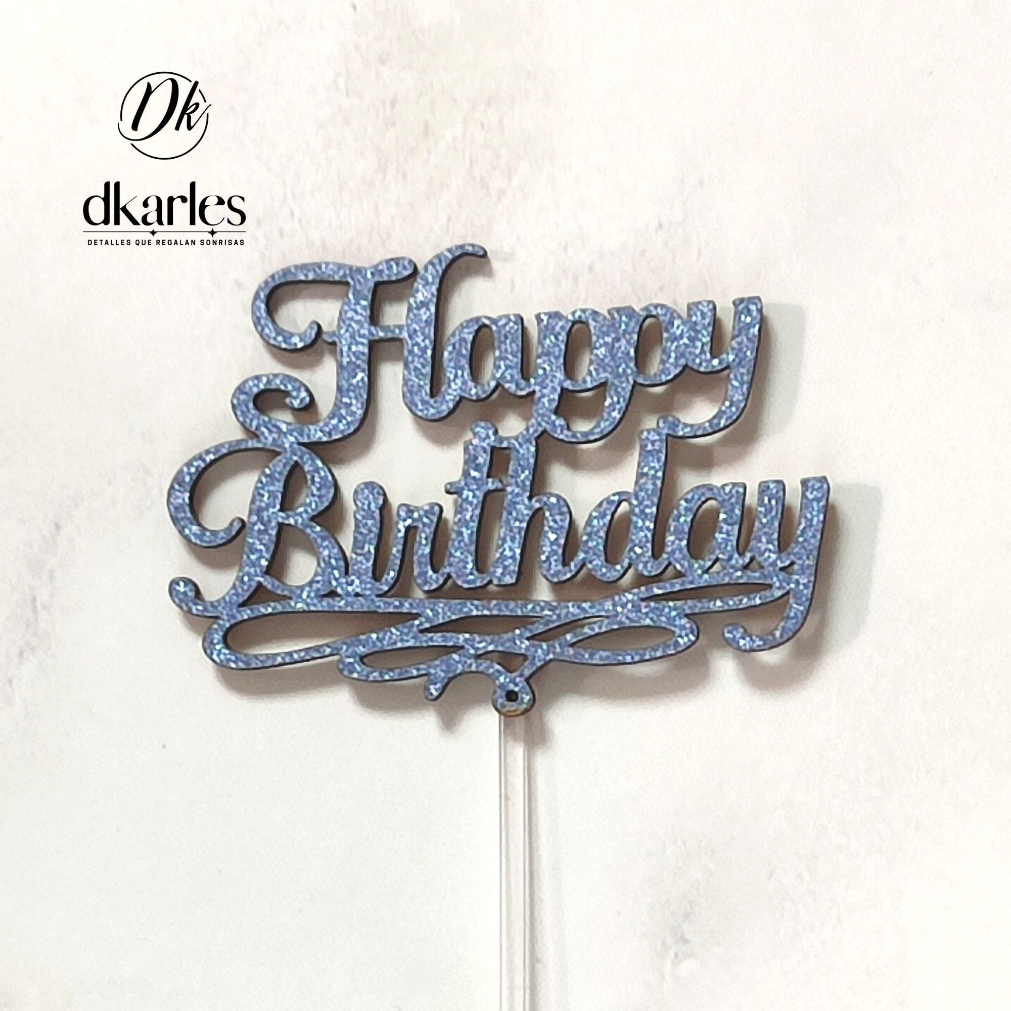 DKarles - Topper Feliz Cumpleaños, azul escarchado